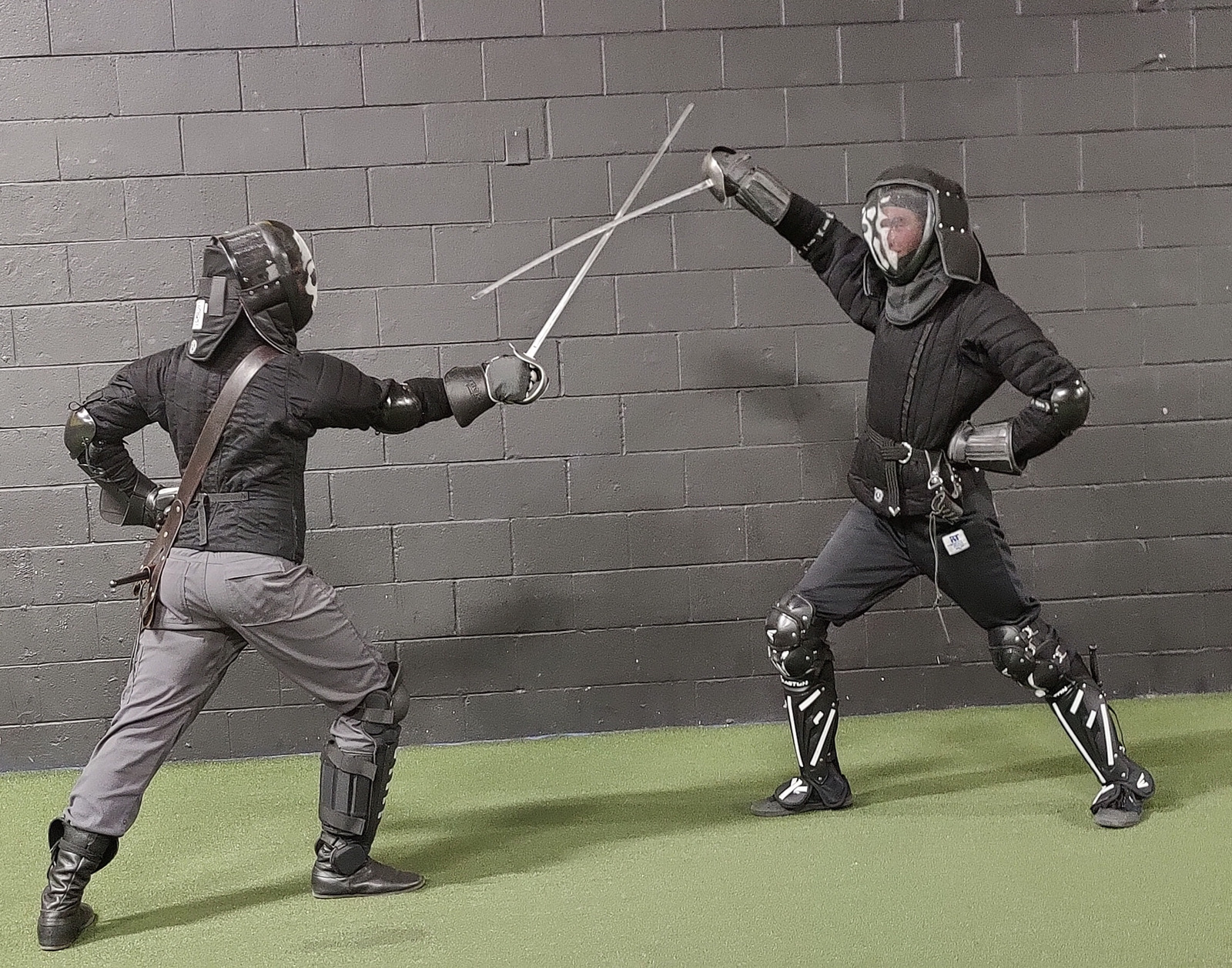 As swordsmen, we want to become the best we can be. To that end we train saber and longsword on parallel tracks. This training helps to learn martial concepts in general in a way the single study of one vs the other does not. We can contrast the difference in footwork and explore why the original masters taught as they did.